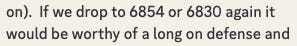 Defending the 6854 level was crucial, and the subsequent move to 6887 rejection and then continued chop and rejection right below 6875 demonstrates the power of the resistances. Always trust the levels.