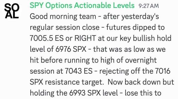 - • Actionable SPY SPX Levels provided daily.