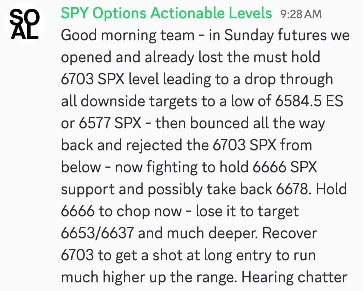 - • Actionable SPY SPX Levels provided daily.