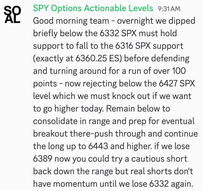 This is what happened. The market opened with an overnight futures bounce, but we quickly faced rejection just below the critical 6427 resistance level. As anticipated, the drop was sharp, leading us to give up key supports at 6389, 6375,and finally 6332, culminating in a low of 6316.91—exactly at our 6316 downside target. The bounce that followed brought us back above the 6332 level into the close, showcasing the volatility of the session. $SPY ( ▼ 0.33% ) $SPX ( ▼ 0.39% ) $ES_F ( ▼ 0.37% )