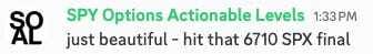This is what happened. The market opened with strong momentum after successfully defending the critical 6612 level during Sunday futures, which laid the groundwork for a bullish session. As anticipated, we broke through the 6645 resistance and continued to surge, peaking at a high of 6715.75, right at our 6710 upside target. $SPY ( ▲ 0.94% ) $SPX ( ▲ 0.91% ) $ES_F ( 0.0% )