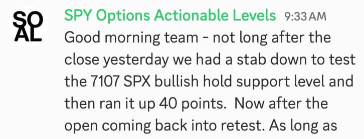 This is what happened. The market initially dipped but defended the 7107 ‘bullish hold’ support level shortly after yesterday’s close, which set the stage for a steady climb toward our resistance target of 7149. Then in the regular session we retested most of these supports and dipped and defended the key 7057 level but managed to maintain above into the close. $SPY ( ▼ 0.66% ) $SPX ( ▼ 0.63% ) $ES_F ( ▼ 0.67% )